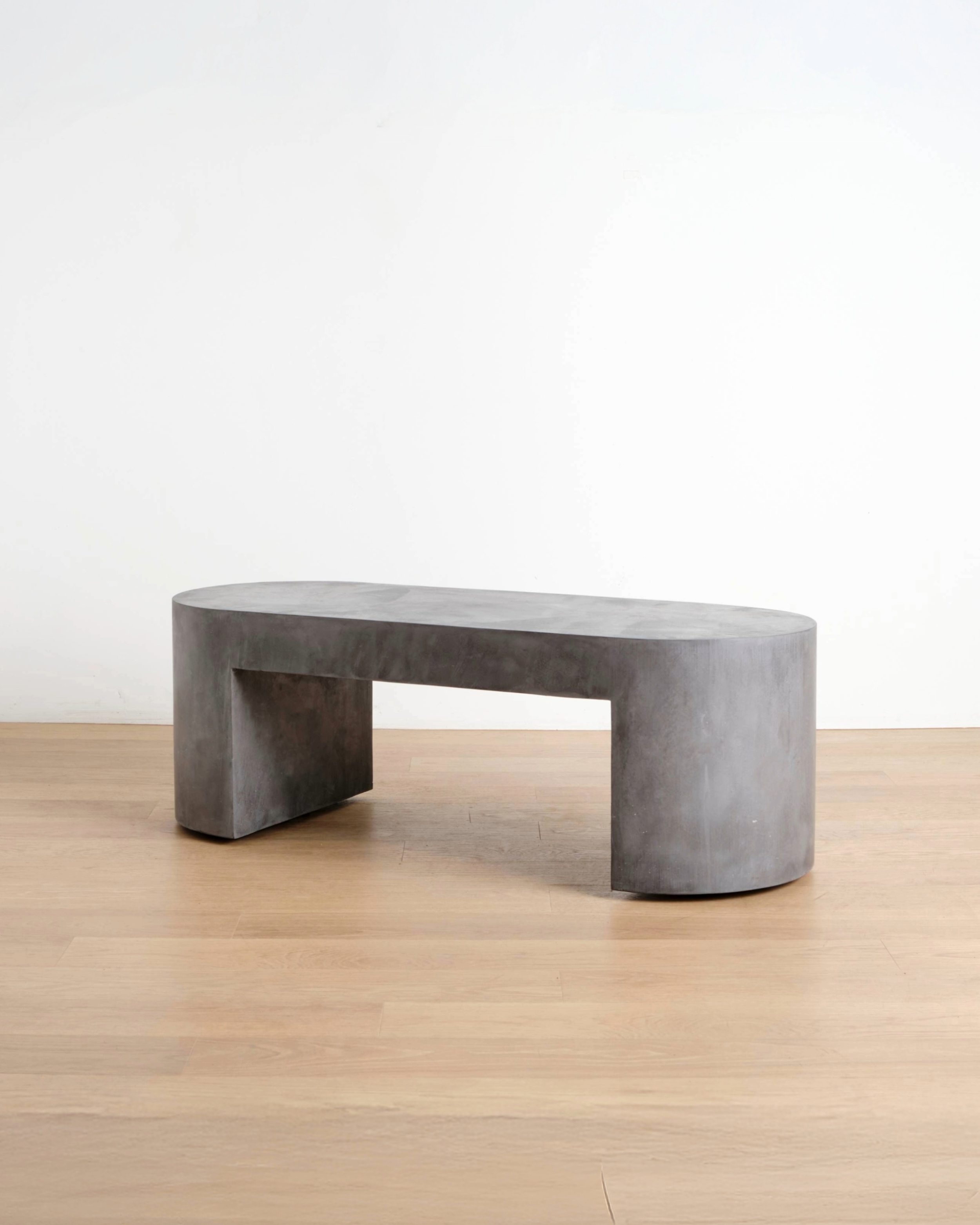 With its sculpturally inspired design, the Rollerbench boasts sleek lines and sophisticated forms. This design has been crafted to embrace versatility, seamlessly adaptable to both indoor and outdoor settings. Functioning as a coffee table, entryway bench, or even an ottoman, the Rollerbench redefines utility. Supported by recessed wheels, this mobile masterpiece weighs approximately 130 lbs., appearing deceptively lighter than it looks.